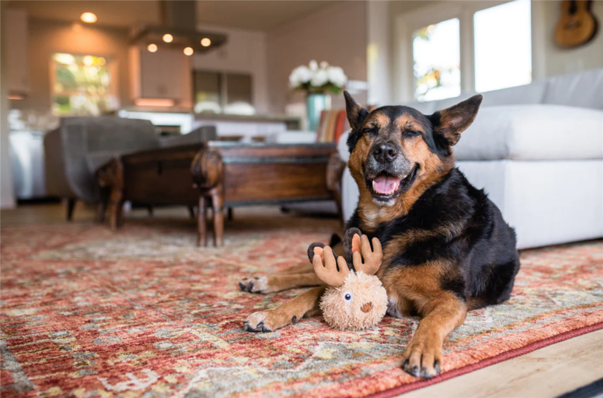Den søte Jackalope er klar til å holde hunden din i selskap! En «jackalope» er et mypotologisk dyr som sies å ha en kropp som en hare og gevir fra et rådyr.